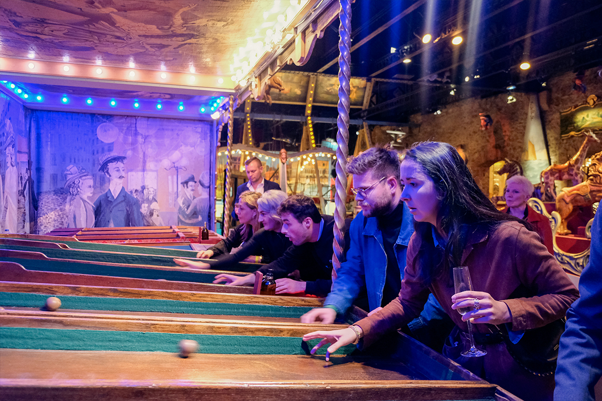 La possibilité d’utiliser à loisir les manèges centenaires fera vivre à vos invités un moment inoubliable. Plusieurs autres attractions mettront à l’épreuve leur habileté et leur adresse. En franchissant les portes ils changeront d’époque. Ils seront en 1900, âge d’or de la fête foraine.