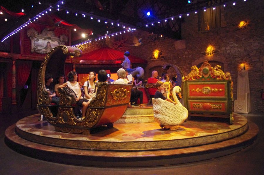 Le visiteur participe également de cette mise en scène, il entre dans les salles tel un acteur entrant en scène en passant sous des rideaux de théâtre. Sur chaque manège il suit un scénario, aux Salons Vénitiens par exemple, il se transforme en automate au son d’une boite à musique sur un manège de gondoles.