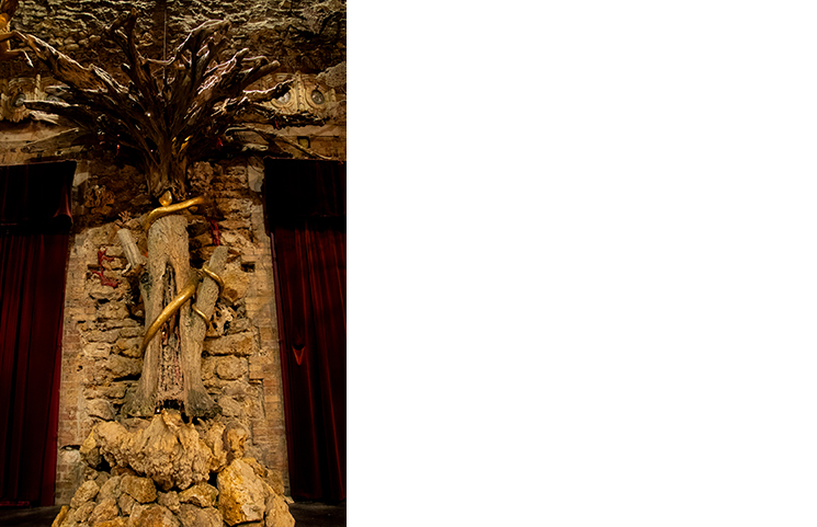 Ce morceau d’arbre prend ici la forme d’un lion se reposant. Cependant, cette paréidolie laisse planer plusieurs doutes : si certains y voient un lion, d’autres peuvent y apercevoir un sanglier ou encore un dragon à crête ; l’interprétation est libre à chacun ! C’est aussi cela l’esprit du Théâtre du Merveilleux : permettre à tous de s’approprier le lieu et d’en faire son propre moyen d’évasion, son monde de rêves et d’illusions.